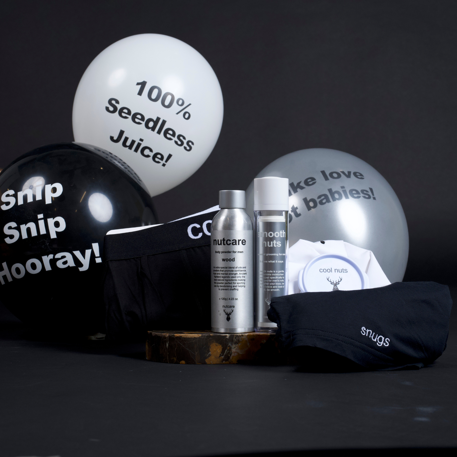 Go on, give yourself and your nuts the ultimate in care for your big day, with the make love not babies vasectomy pack.